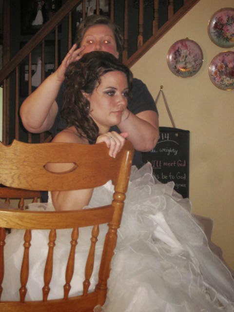 There was a house-full of people..all the bridesmaids, flower girls, both sets of parents, groom was in and out, photographer, etc...